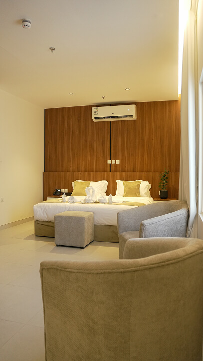 A modern, comfortable space designed for solo travelers. The Single Room offers clean lines, a calm atmosphere, and essential amenities for a seamless stay, ideal for business or short visits.